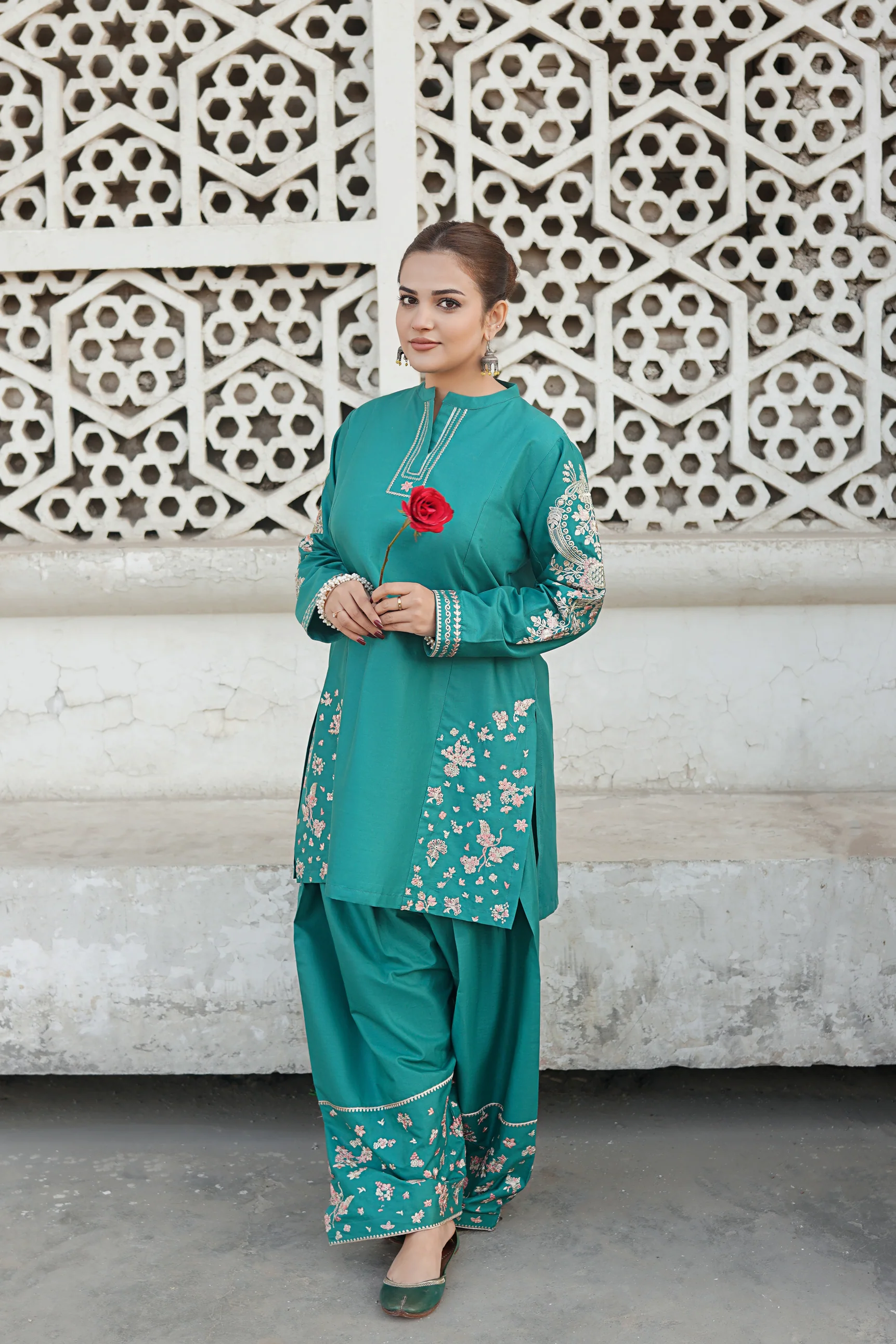 Experience luxury with PAYAL. This ready-to-wear lawn suit features intricate embroidery on the shirt panels and sleeves, in a variety of colors with a touch of dull gold thread. Paired with a loose, embroidered shalwar, this suit is perfect for any occasion.